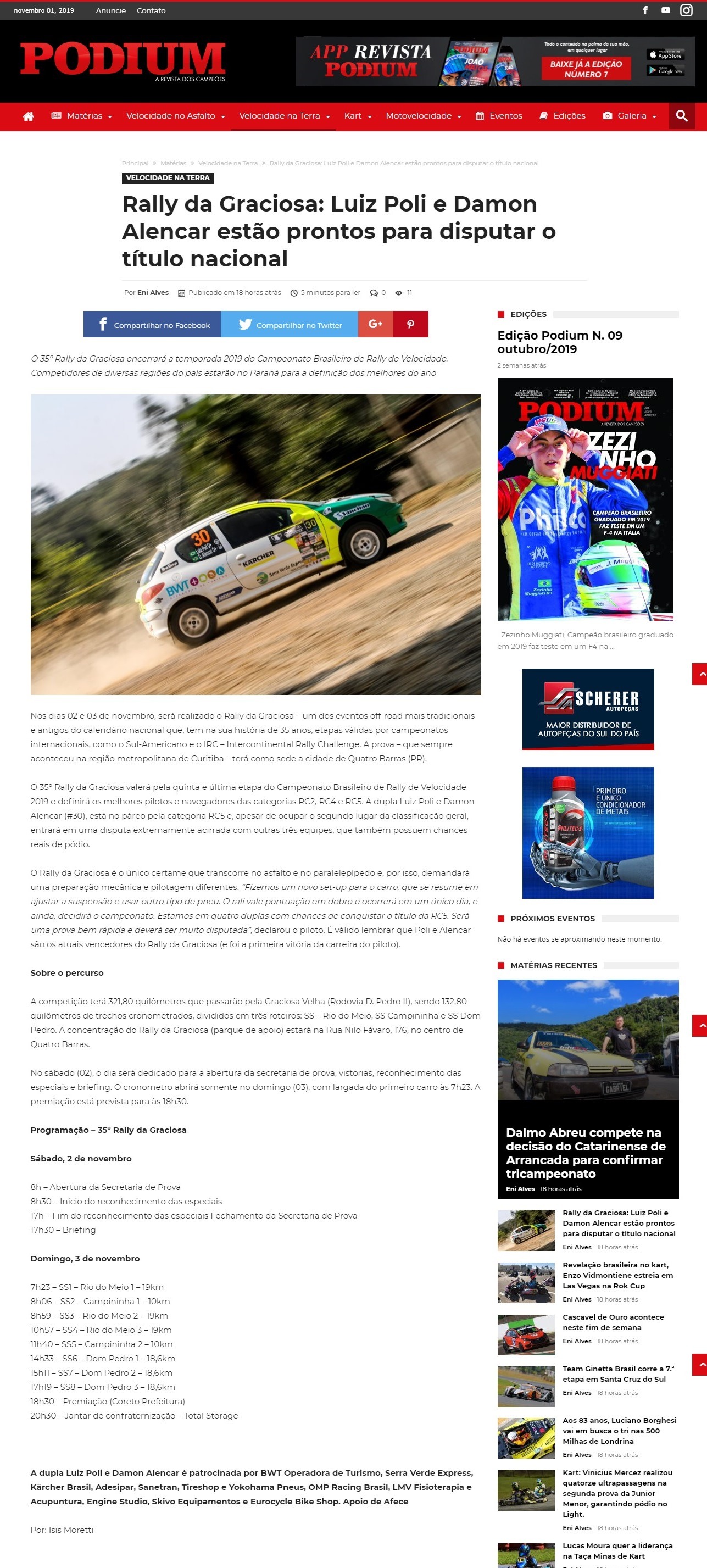 Foram 321 quilômetros pela antiga Estrada da Graciosa... O Campeonato Brasileiro de Rally de Velocidade 2019 foi encerrado neste último domingo, 03 de novembro Eles lutaram até o fim... Travaram uma disputa segundo a segundo [...]