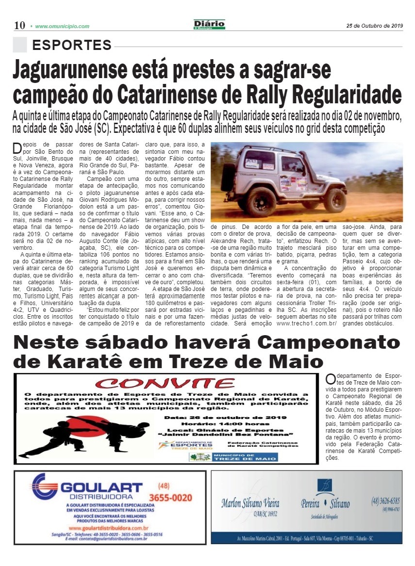 São José receberá a decisão da temporada 2019 do Catarinense de Rally Regularidade